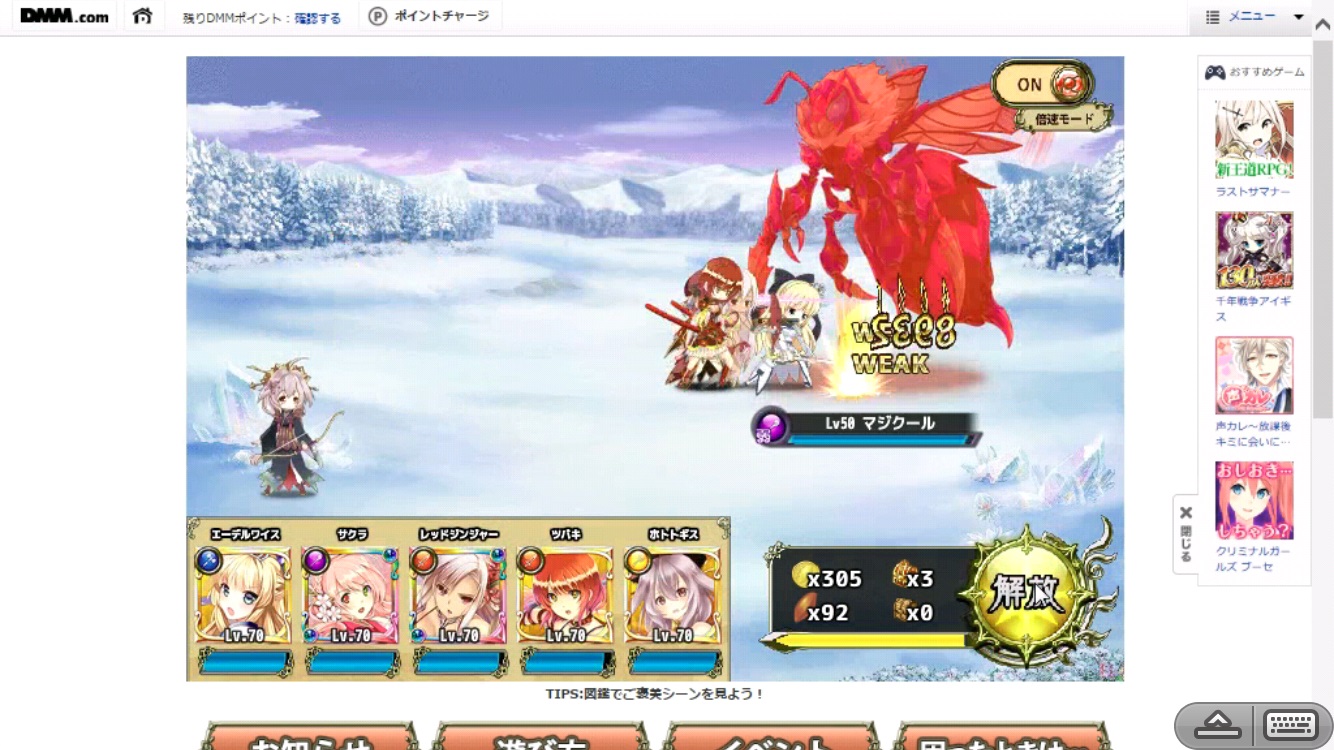 ちなみに激重で花騎士も動いたとおもったら途中でこの画面になります・・・