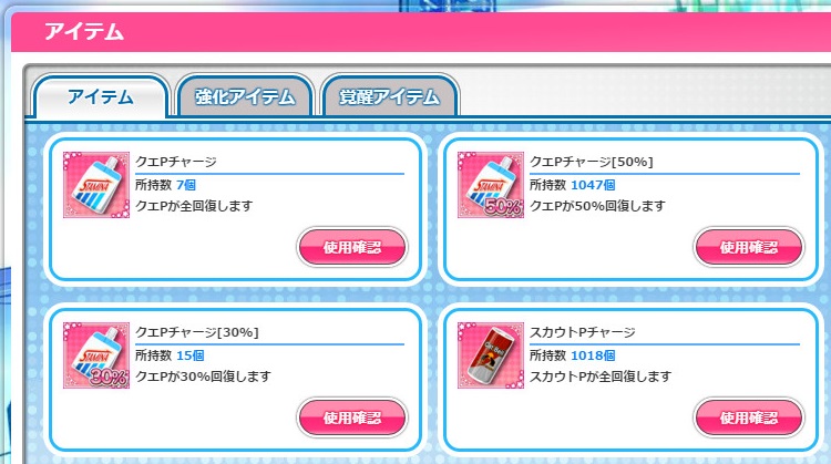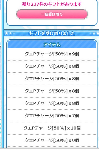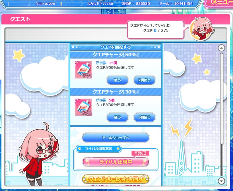 ということで、溜まってたドールでクエP50%チャージを約1000個補充