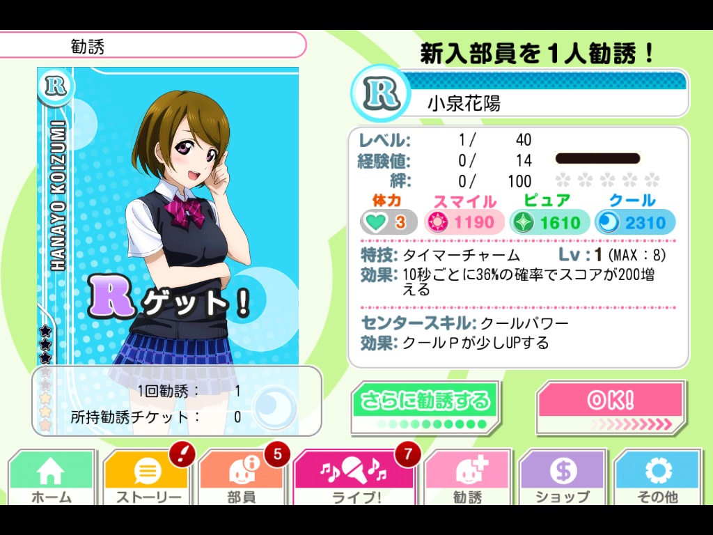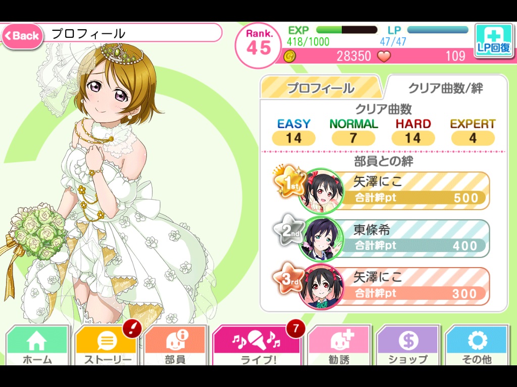 スクフェス日記1 (佐崎司) ラブライブ・スクフェス 2014年06月16日 大半の方は初めまして、佐崎です以上、挨拶終わり( ゚д゚ )そもそも身内しか見ていないと思うので挨拶とか無駄かなと思っている( ゚д゚ ) 6月6日にスクフェス開始し、最近やっとラブライブ!一期見終わったばかりのにわかラブライバーですスクフェス開始時に第一印象で真姫ちゃんに惚れ、スクフェスで花陽ちゃんボイスに惚れ、エリチはもはや高嶺の花レベル、アニメ見出して海未ちゃんも可愛いprpr~!(*‘ω‘ *) ・・・なに書いてるかよく判んなくなってきたのでとりあえず現状のスクフェス(´ω`)某友人に「無課金でも楽しめるし、最初は順位気にしなくても良いよ」と言われつつ開始まぁこうなるわな・・・・・・いやいや、なぜかこうなりました、ハイだってSR欲しいじゃん!( ゚д゚ ) で、 勧誘チケット・・・予定調和ですね、わかります(´ω`)Rェ~・・・とそんな感じで現状↓ 花陽ちゃんボイスに癒される日々(*´ω`)よろしければまたメガネかけてくれませんかおねがいします幸なことに主は音ゲーは多少嗜みがあるので、ユニットを回復系で固めたらコンテニュー無しでEXPERT取れました(*‘ω‘ *)ただ302sh、テメェはダメだ・・・キャリブレーションしても判定が音と合わない・・・Android端末共通のCPUの仕様として、可変クロックが悪さしちゃってることが原因とかなんとか・・・Rootでも取ってクロック固定してたらマシになるかもですがシャープ機種でRootとかムリ杉&文鎮化コース間違いない・・・ということでiPhone 5Sで少しプレイした後、現状はiPad miniでプレイ中(*‘ω‘ *)そこそこカイテキヨーiPhoneだとイヤホン端子の接続邪魔だわ、イヤホン指さなかったら指がスピーカーに当たって音妨げるわで萎えました(´・ω・`)しょぼんこんな感じの状態で今後も楽しんでまいります・・・勧誘で真姫ちゃんSRとか全然こないよ!( ゚д゚ )マキチャン、ハヤクキテーッ! [1回]PR