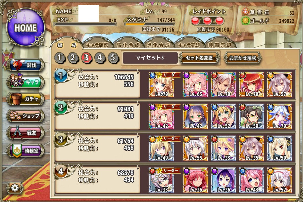 あえて言うなら、今回のイベントマップは全PTの移動力同じぐらいが比較的良いですね(*‘ω‘ *)