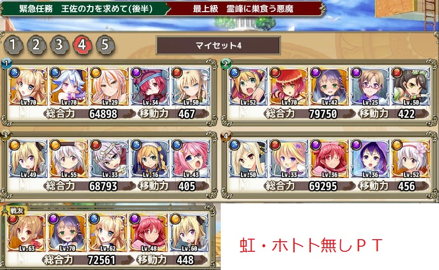 友軍でホトトと虹無しをチョイスしつつ戦力高めのPTというのが意外と希少でした(*‘ω‘)