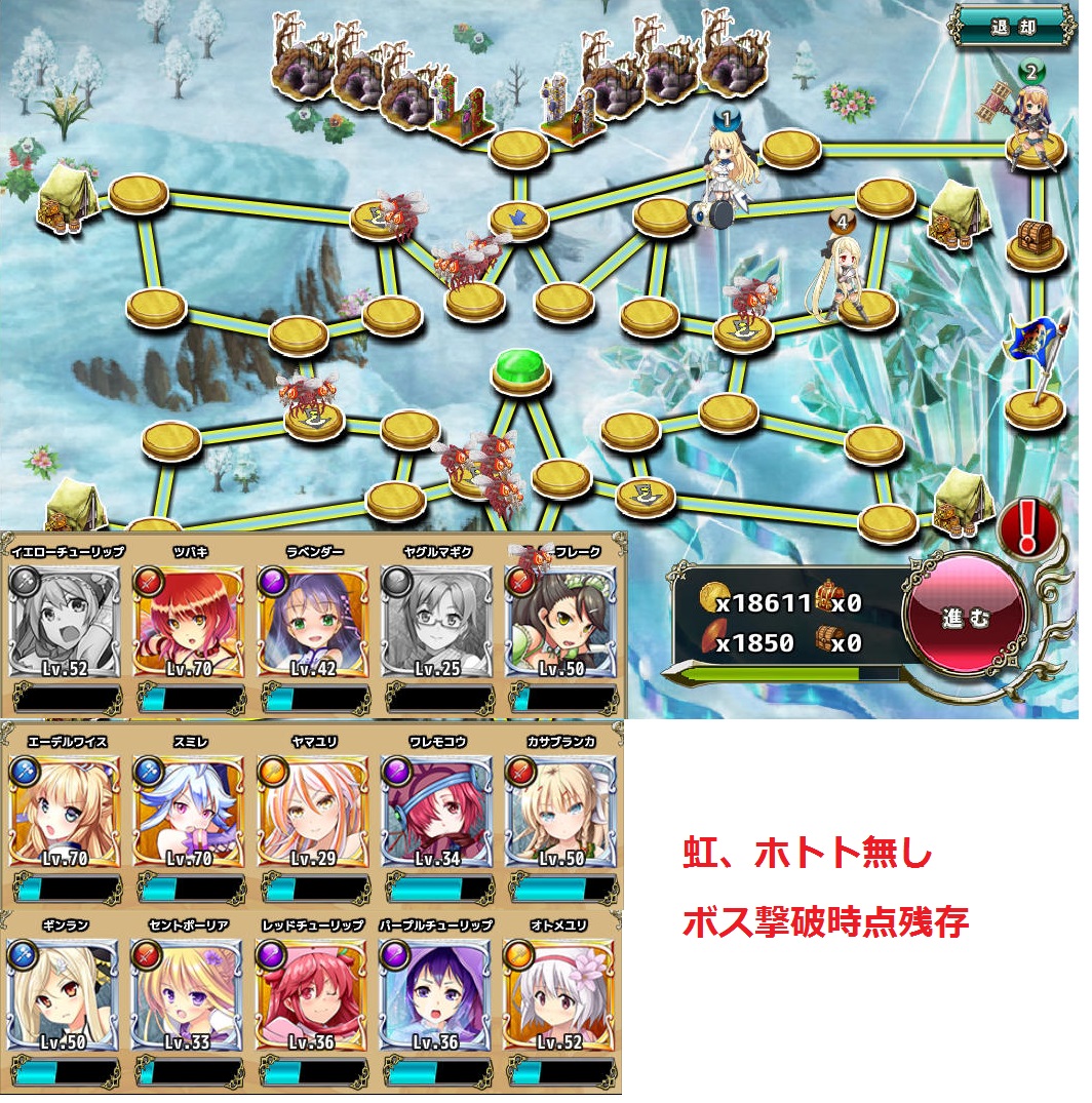 虹の攻撃15%、ホトトの攻撃10%アップの恩恵が無い影響も実感できました。