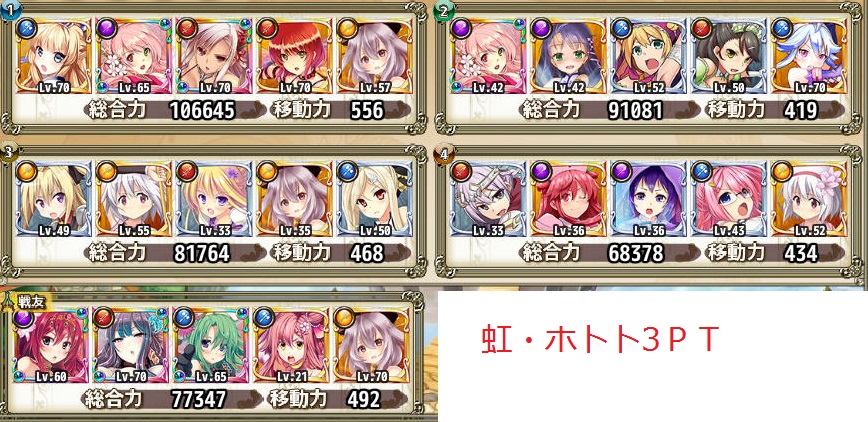 友軍でホトトと虹無しをチョイスしつつ戦力高めのPTというのが意外と希少でした(*‘ω‘)