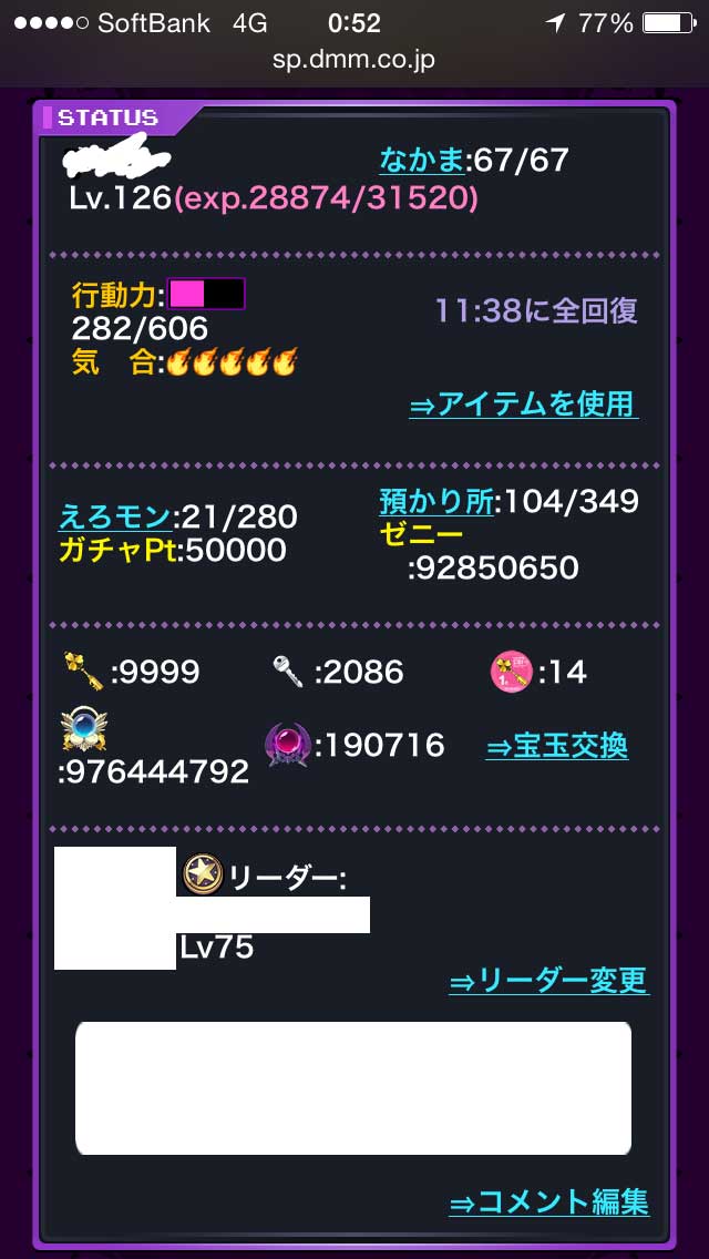 それにしても、行動薬はまだそこそこあるものの、海賊王な方々のミニ気合薬数がひどすぎて、上位20位報酬とかのイベントは控えてほしいと思うばかりです(´Д`)